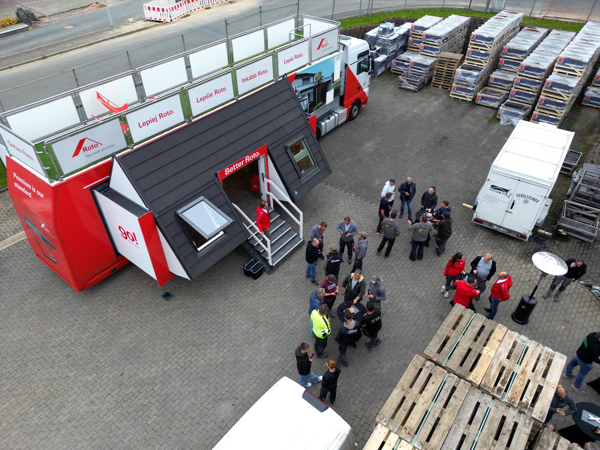 Der speziell ausgestattete Roto-Demo-Truck machte Halt auf dem Firmengelände von Roofland und bot den zahlreichen Besucherinnen und Besuchern spannende Einblicke in die neuesten Entwicklungen rund um moderne Dachfensterlösungen. Viele Roofland-Handwerkskunden nutzten die Gelegenheit, sich direkt vor Ort von den Innovationen des Herstellers zu überzeugen.