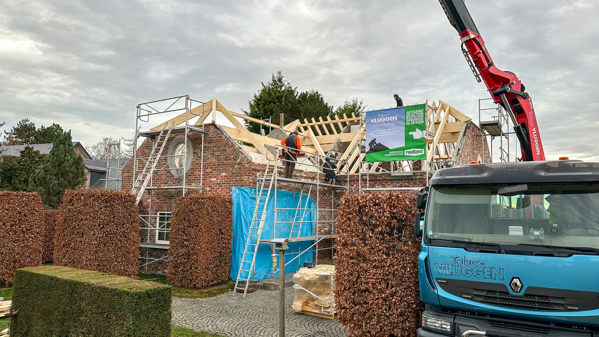 Ein Wohnhaus im Cottage-Stil in Faimes war durch ein Feuer stark beschädigt worden und musste dringend mit einer neuen Dachkonstruktion ausgestattet werden.