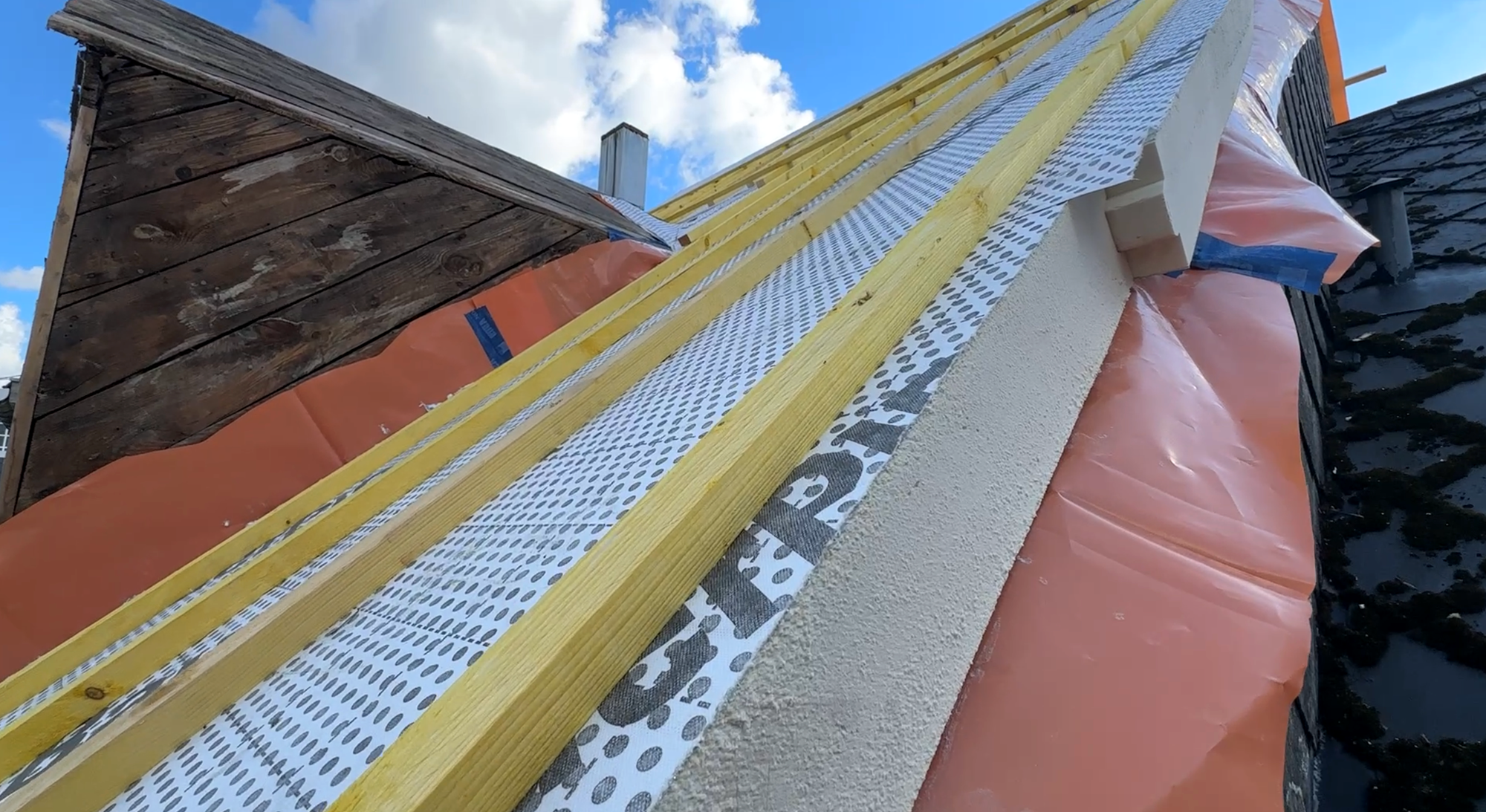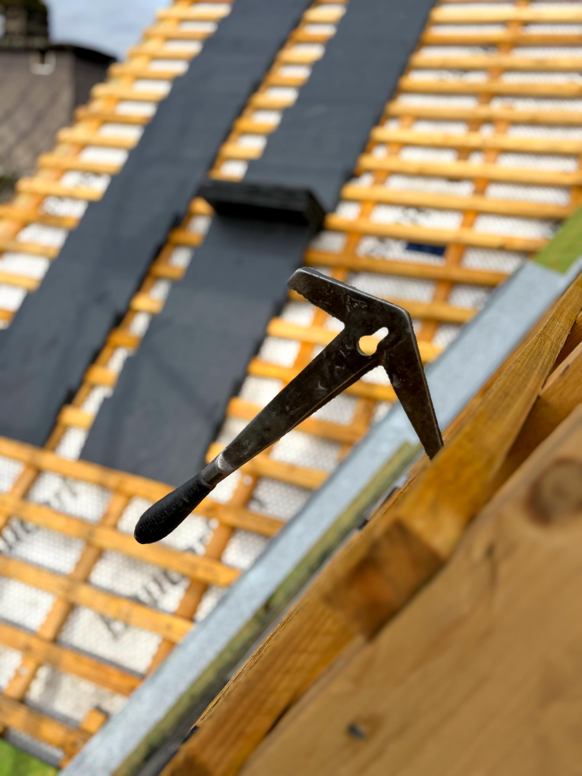 Les anciennes plaques en fibrociment ont été entièrement remplacées par l’ardoise naturelle Samaca 44, un matériau durable et intemporel, alliant esthétique et performance. Pour la rénovation énergétique, une isolation sur chevrons Bauder PIR de 120 mm d’épaisseur a été installée. De plus, de nouvelles fenêtres de toit Velux ont été posées, apportant davantage de lumière, de ventilation et un confort sain dans les pièces supérieures.